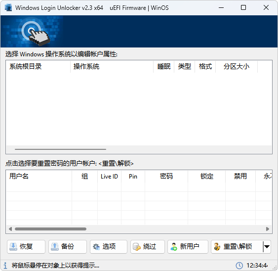 温馨提示:请在Pe模式下使用 Windows Login Unlocker(系统密码重置工具)