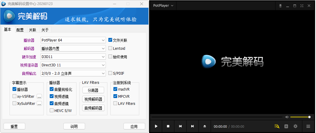 完美解码2026.01.23 安装版 (完美解码播放器) Windows