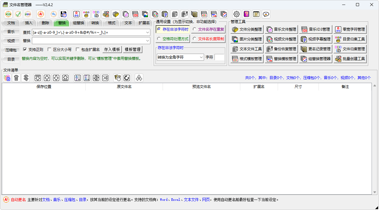 - 文件名管理器 v2.4.2 中文绿色版(支持文件名备份及恢复)