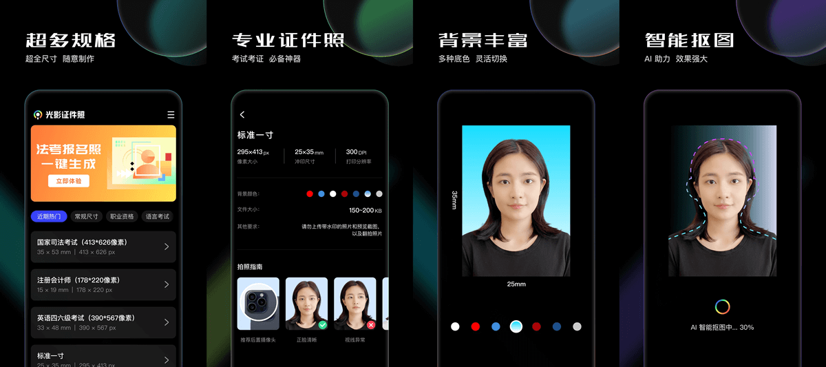 无论是常见的一寸、二寸,还是特定的证件尺寸,光影证件照都为你提供了丰富的选择。