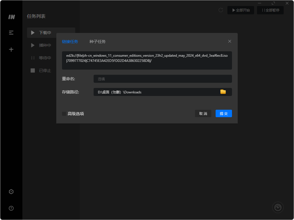 自动下载:可能支持预定任务或自动开始下载指定链接的功能。