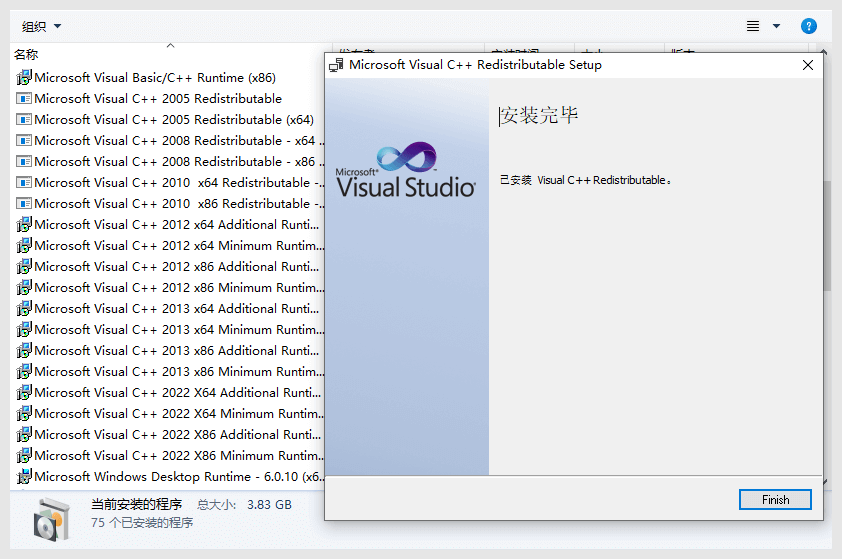 Microsoft Visual C++ Runtimes AIO(简称MSVC,VB/VC,VC运行库合集)系统运行库是Windows操作系统应用程序的基础类型库的可再发行程序包.Microsoft Visual C++运行库是系统装机必备组件,此版VC++运行库合集(VisualCppRedist),体积小巧,支持静默参数,整合了所有版本visual c ++,自动检测安装所有vc库版本.