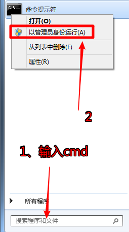 1、  打开命令行(Win7、Win8、Win8.1、Win10请用管理员权限打开)