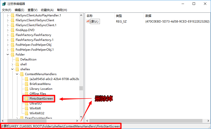 HKEY_LOCAL_MACHINE\SOFTWARE\Classes\Folder\shellex\ContextMenuHandlers\PintoStartScreen