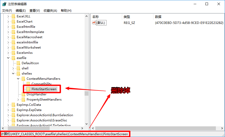 HKEY_LOCAL_MACHINE\SOFTWARE\Classes\exefile\shellex\ContextMenuHandlers\PintoStartScreen