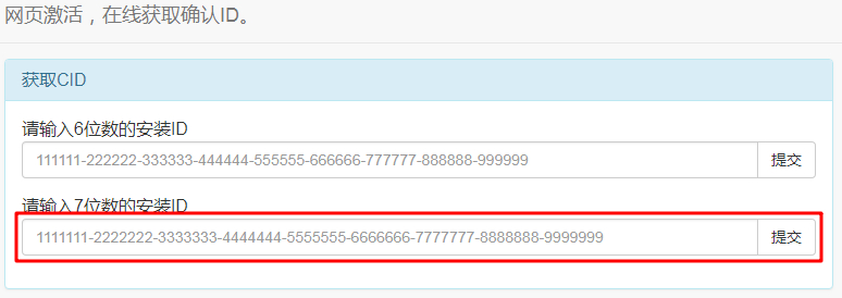 将上述“安装ID”键入到网页的输入框内,。点击“提交”,稍等片刻将生成“确认ID”。