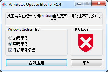 管理员身份运行 Windows Update Blocker 后点击禁用服务(建议同时勾选保护服务设置)