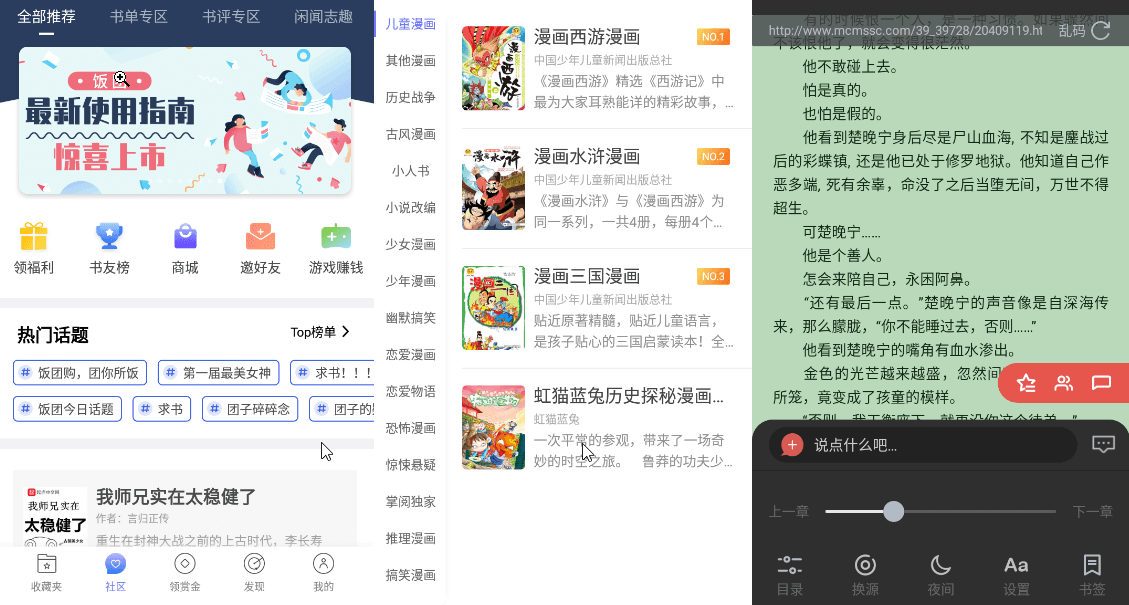 饭团看书聚集了“百度”“搜狗”“360”等强大搜索引擎,都市言情,武侠,仙侠,历史,校园纯爱,竞技,豪门婚恋,末世,宫斗,悬疑,推理,穿越小说,耽美同人小说等小说分类任你挑选!是名副其实的全网小说大全!也是追书必备阅读神器!