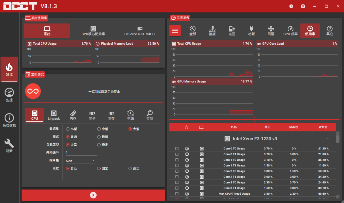 电源检测工具 OCCT v8.1.3 单文件官方正式版 Windows