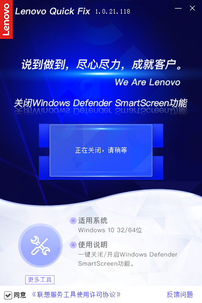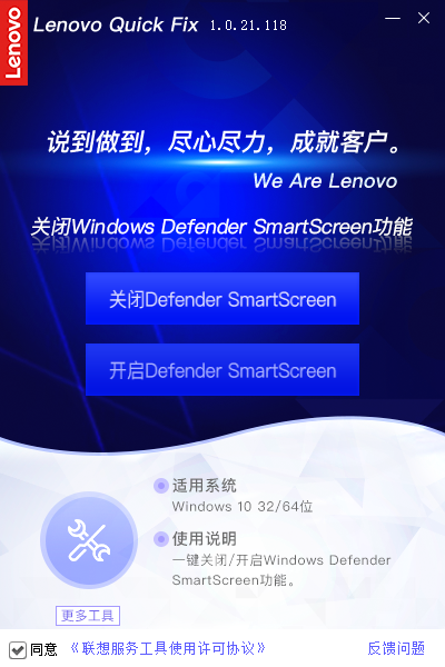 联想工程师专用工具:Defender Smartscreen禁用工具 Windows