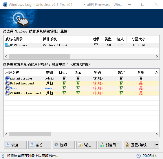Windows7/8/10/11本地帐户密码破解工具 Windows