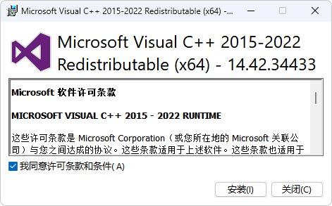 Visual C++ 2015, 2017, 2019, 2022 版本现在共用一个安装包。