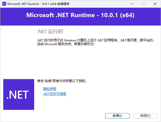 Microsoft .NET Runtime(.net10.0) v10.0.1 Windows .NET