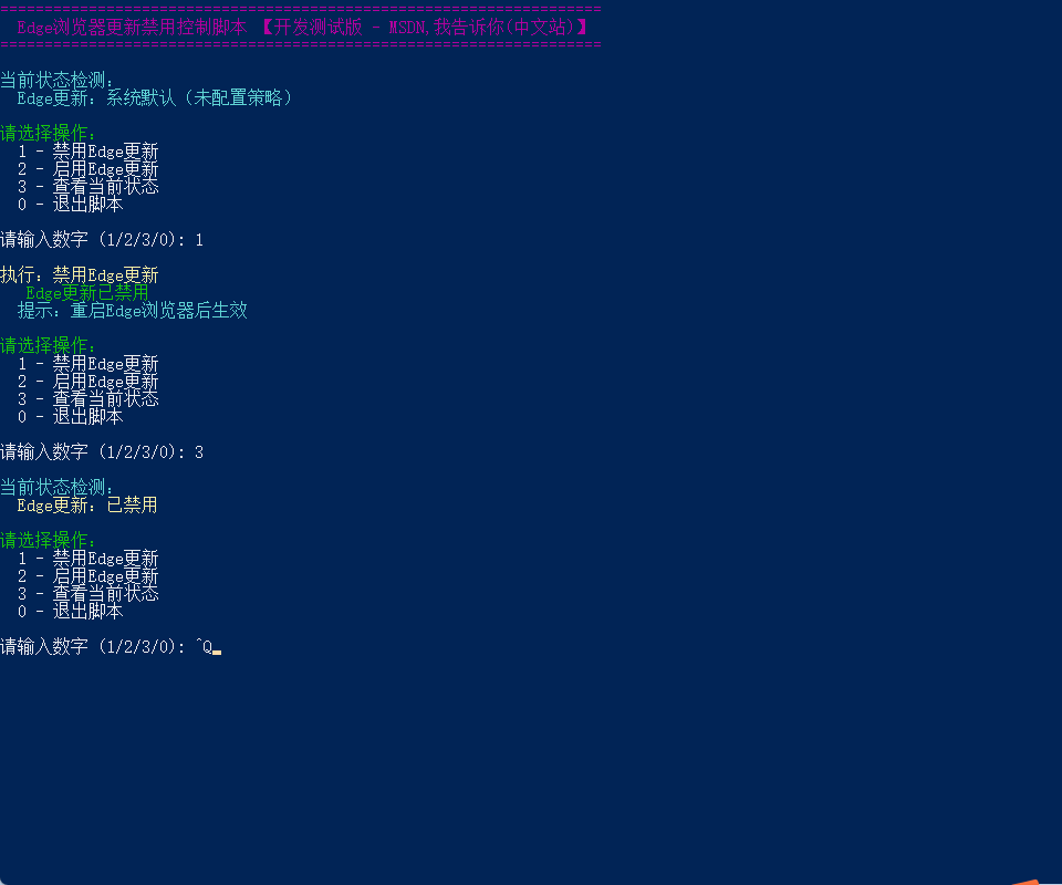 脚本通过修改Windows注册表来控制Edge更新: