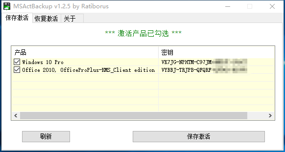 系统激活备份恢复工具 MSActBackup v1.2.5 汉化便携版 Windows